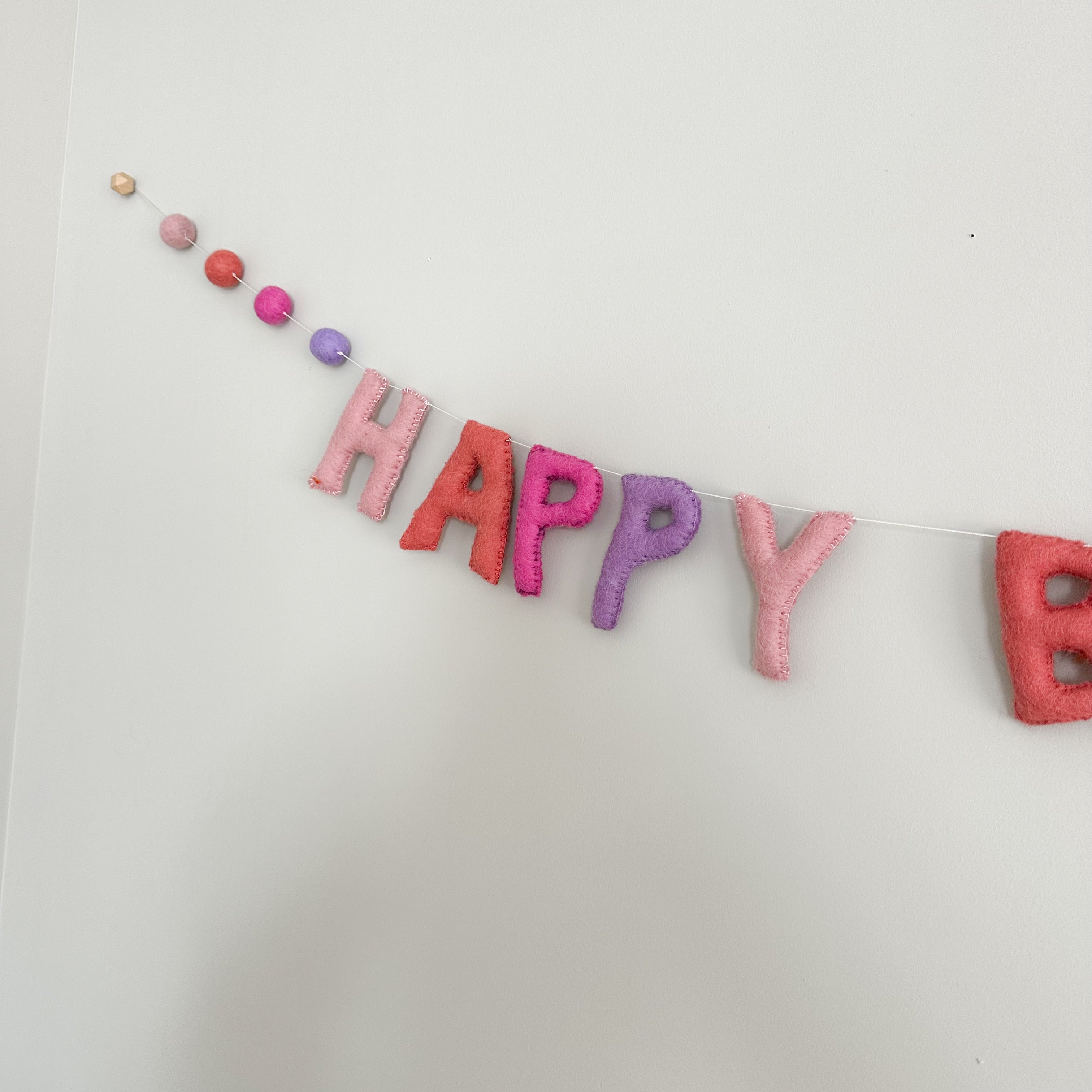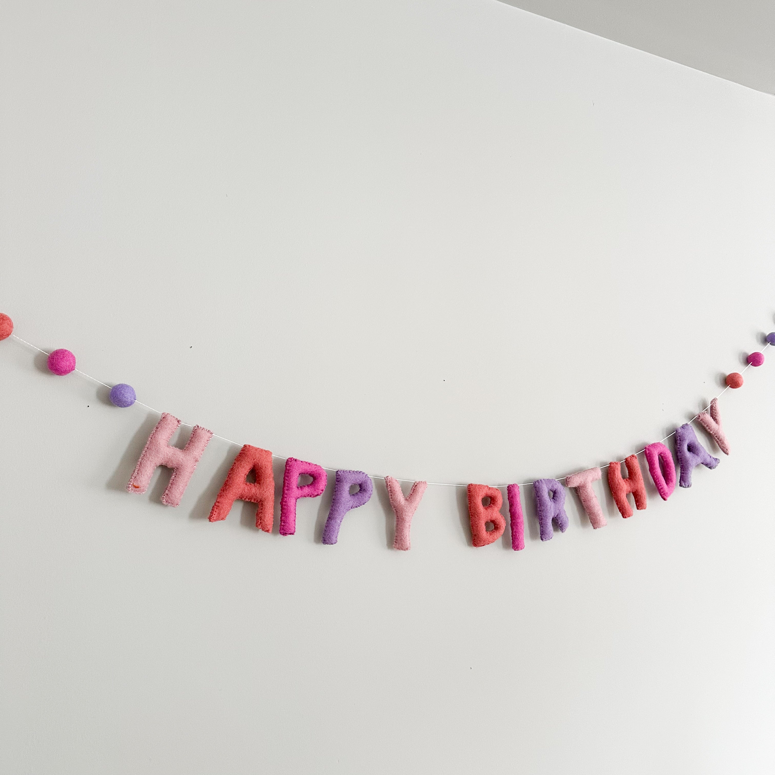 Felt Happy Birthday Garland - Pink & Purple Hues