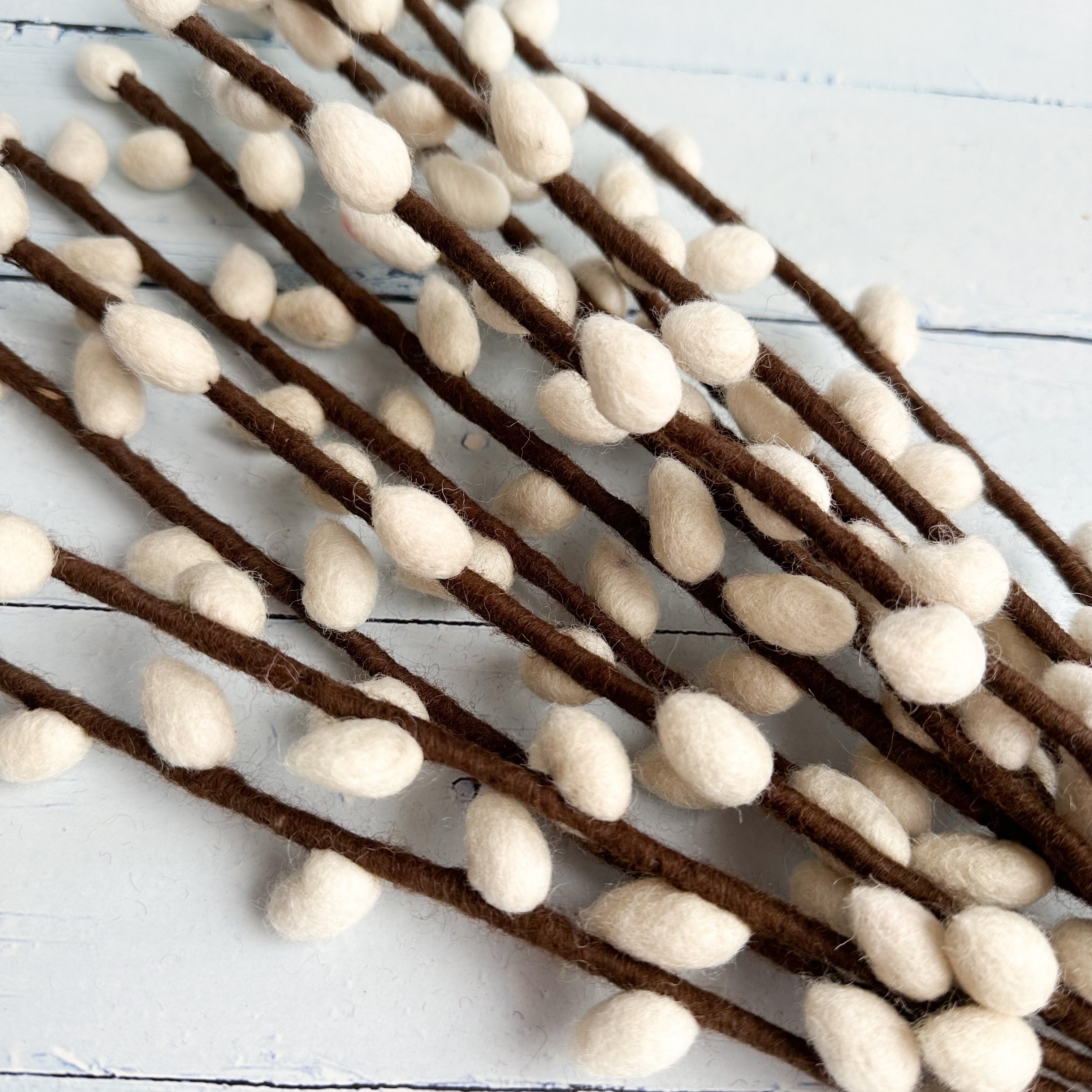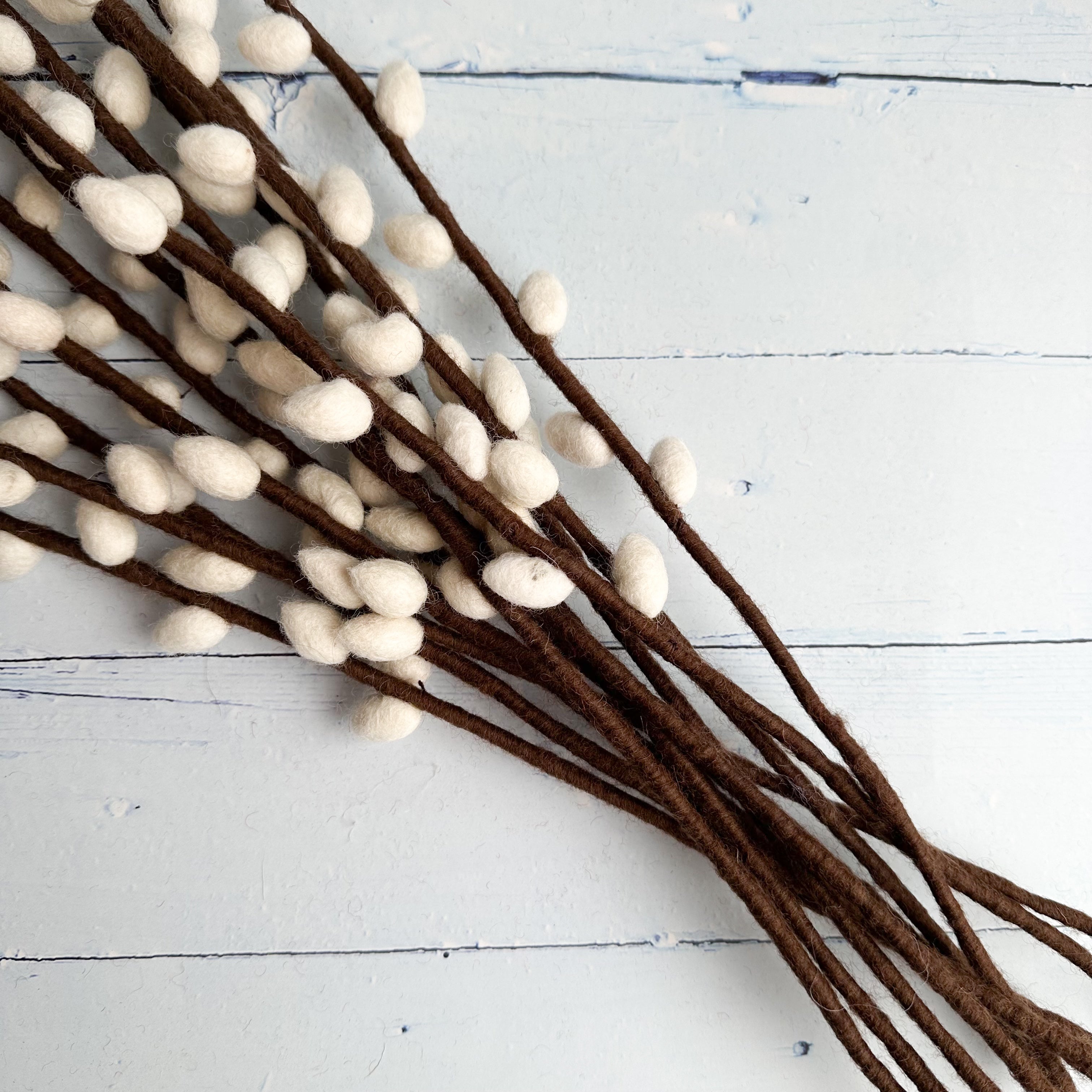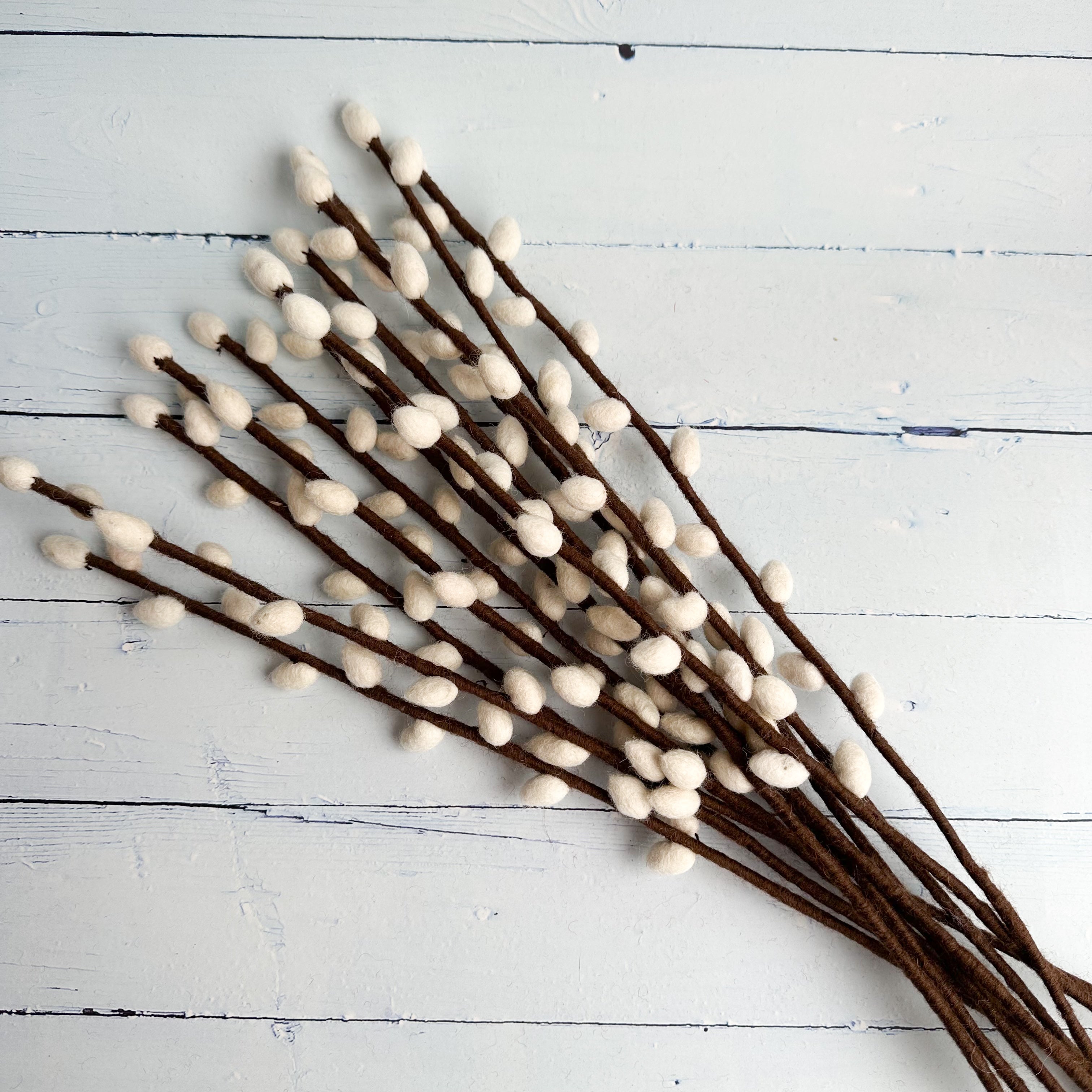 Inspired by real Salix discolor pussy willow branches, this felt stem brings cozy, earthy charm to any space. Each 50 cm stem is handmade using wool felt, with plush cream catkins and warm brown detailing. Style it in a vase, add it to seasonal bouquets, or use it as a subtle accent in your boho displays.