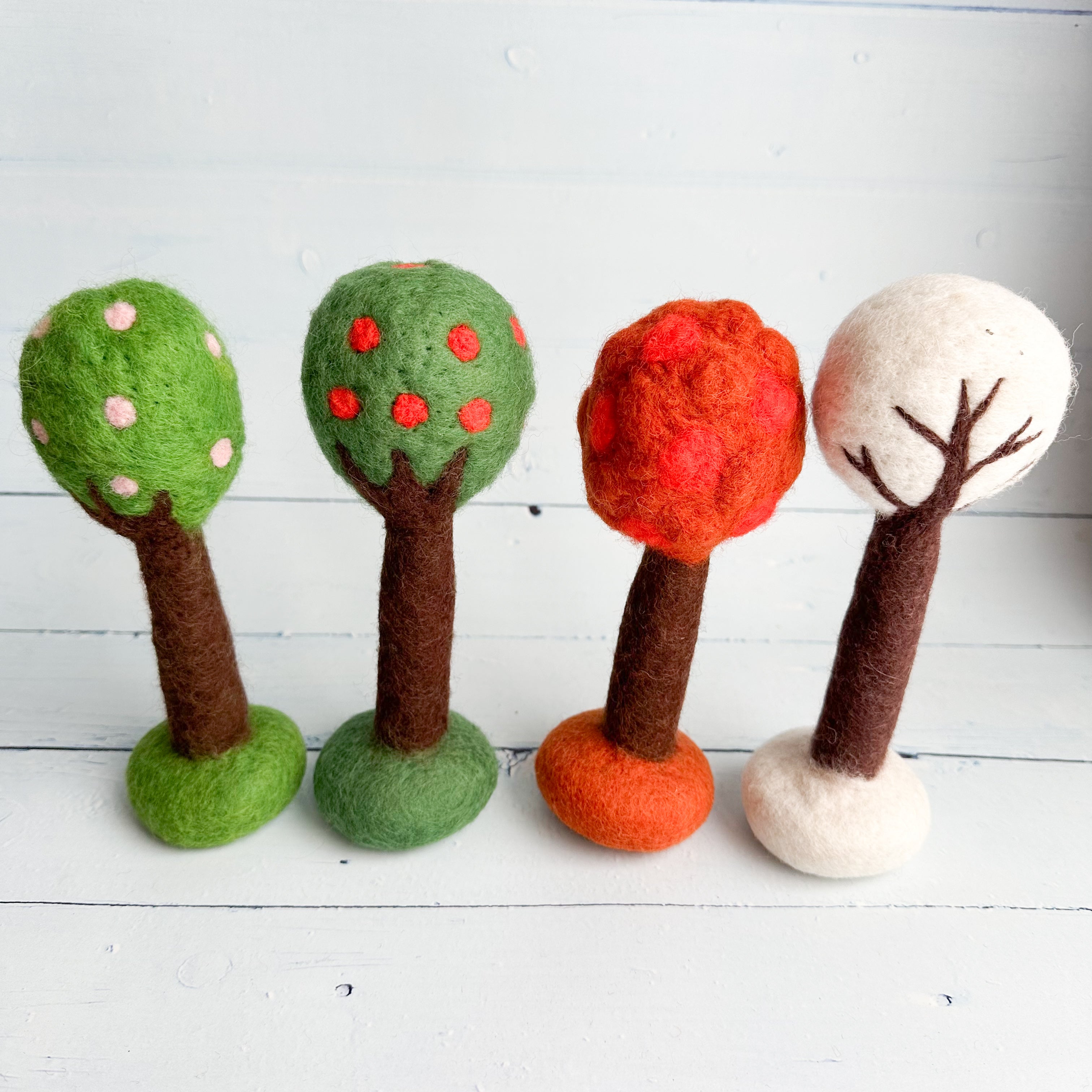 These felt trees can be purchased individually or as a coordinated set, making them a versatile addition to play shelves, nature tables, or festive décor.