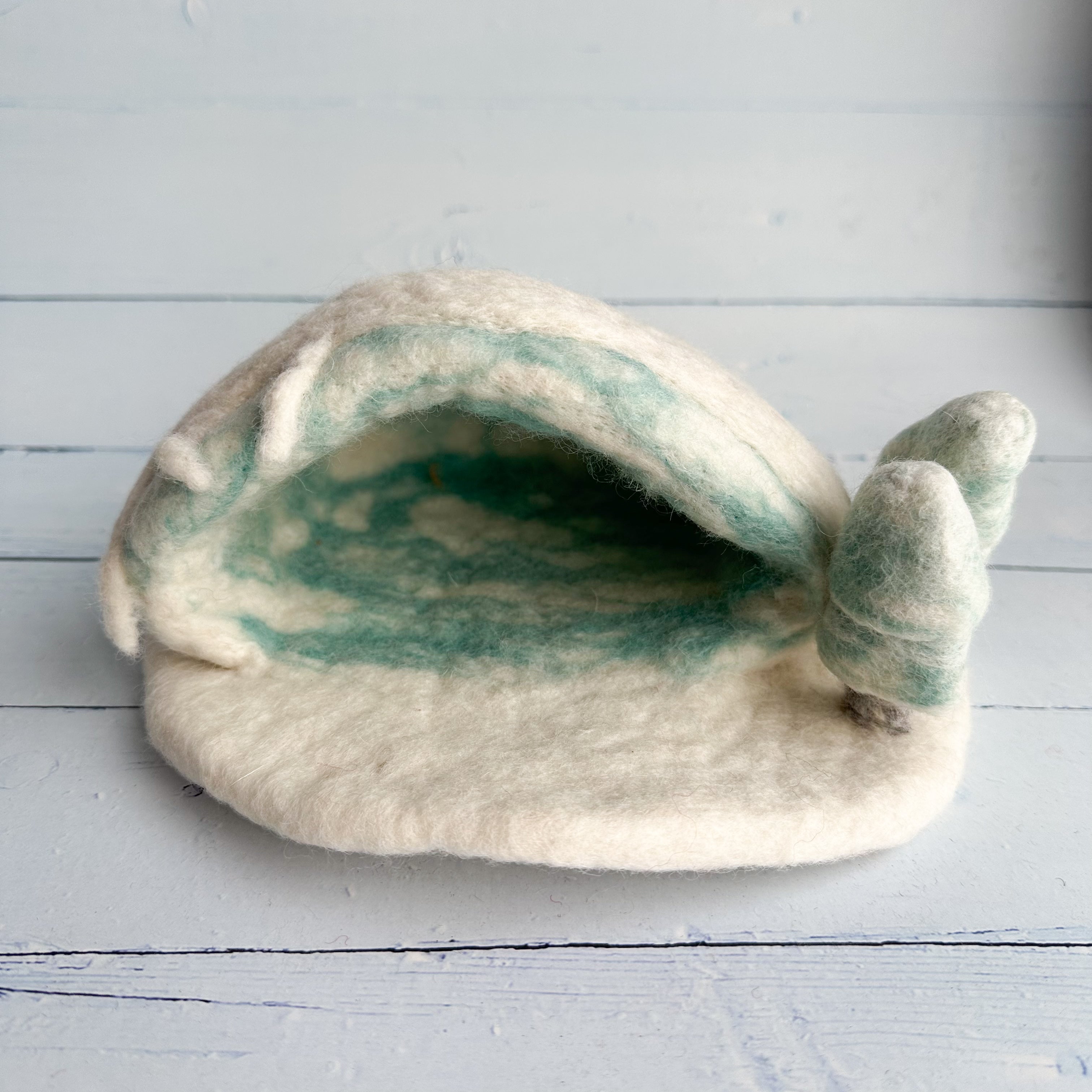 Create a magical winter world with this beautifully hand-felted winter cave, designed to inspire imaginative, open-ended play. Crafted from natural wool, this soft sculptural cave features snowy details, icy blue interior accents, and a cozy hideaway perfect for arctic animals and winter storytelling.